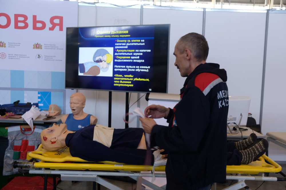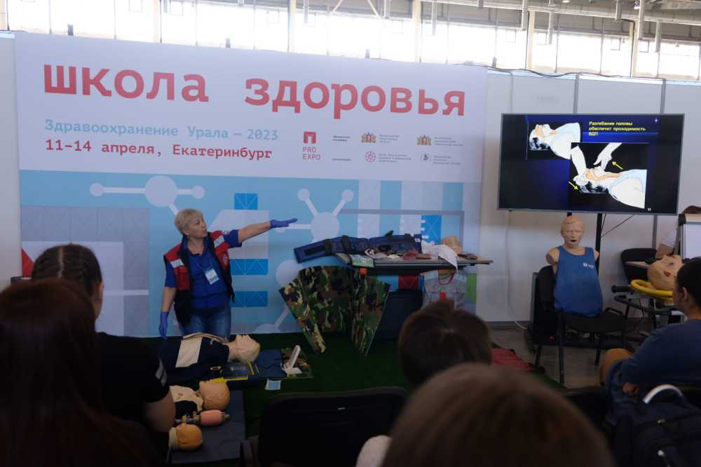 Заведующая учебным центром Наталья Бахматова и врач-травматолог Сергей Попов в день открытия выставки провели масштабный мастер-класс по первой помощи, где наглядно продемонстрировали ключевые навыки, которые помогут спасти жизнь: наложение жгутов и тугих повязок, алгоритм искусственной вентиляции лёгких, наложение шин, иммобилизацию конечностей при переломах.