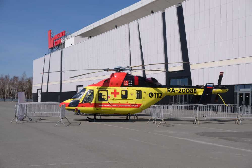 Одним из ключевых экспонатов выставки-форума стала воздушная скорая помощь ТЦМК - вертолёт отечественного производства встречает гостей прямо у входа в Екатеринбург-Экспо.