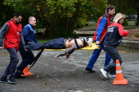 7. «Эвакотест». Отрабатывались навыки по медицинской эвакуации пострадавших при обрушении трибуны, лидером стала бригада отделения СМП ГБУЗ СО «Нижнесалдинская ЦГБ».