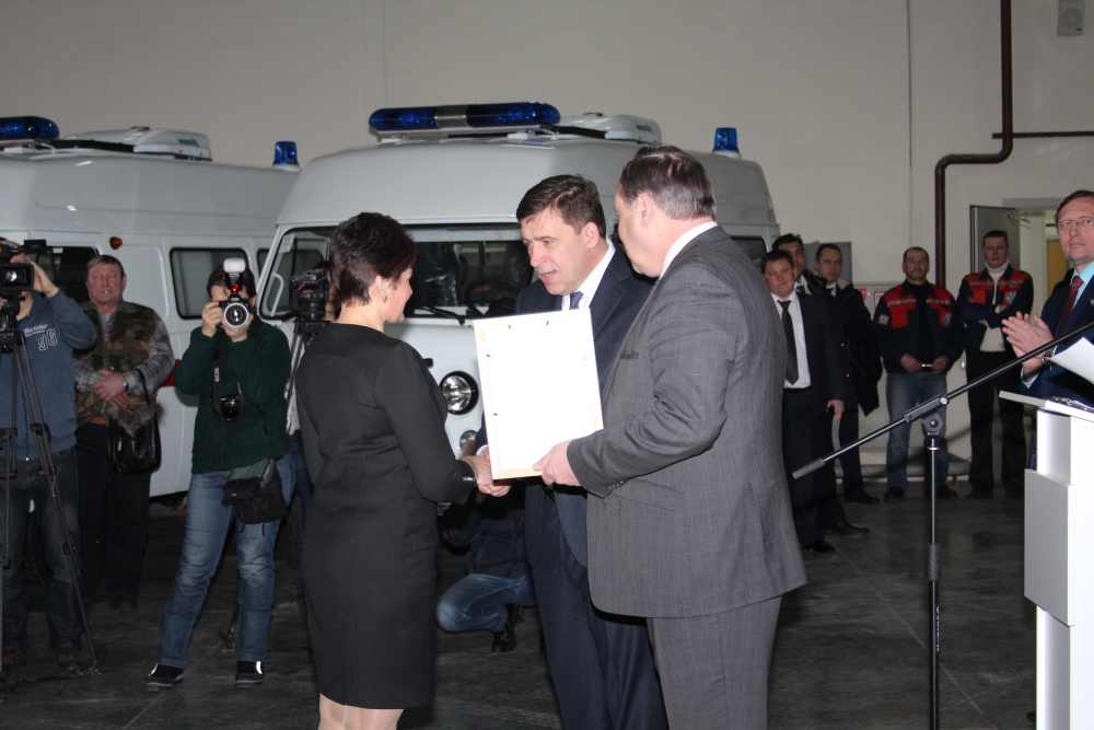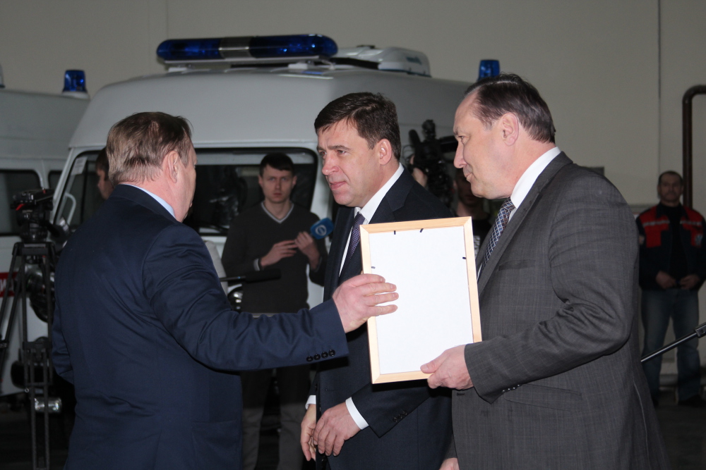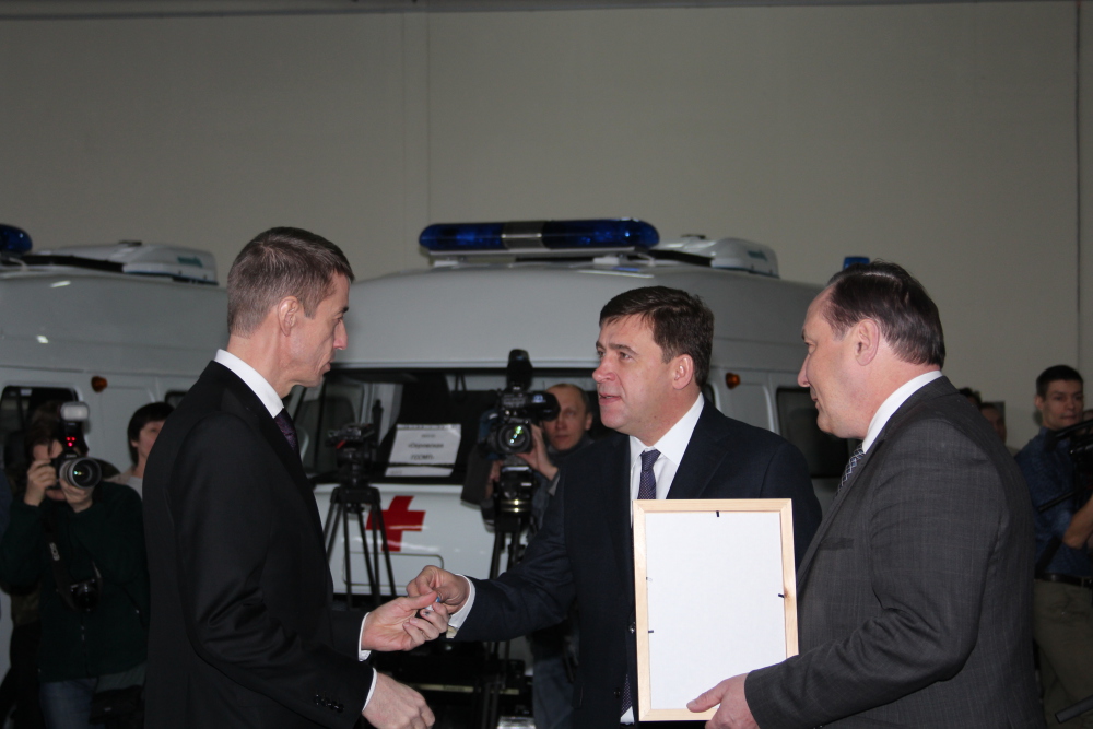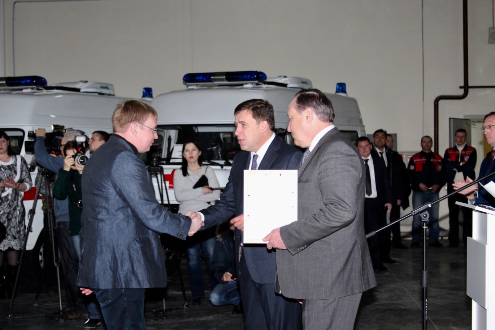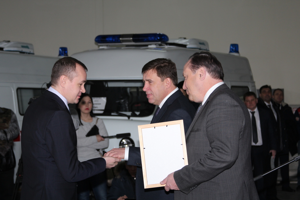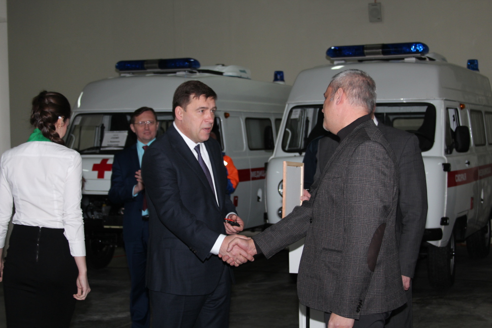 Во исполнения приказа Министерства здравоохранения Свердловской области №74-п от 18 января 2017 года состоялась торжественная церемония передачи новых автомобилей для службы скорой медицинской помощи области и выездной реанимационной бригады неонатальной службы ОДКБ№1, которая прошла 20 января 2017 года в 11-00 по адресу: г. Екатеринбург, ул. Малопрудная, 6, ГБУЗ СО "ТЦМК". Передачу ключей и документов на полностью укомплектованные автомобили класса "В" и "С" представителям муниципальных образований и ОДКБ№1 проводили губернатор Свердловской области Е.В. Куйвашев и министр здравоохранения Свердловской области И.М. Трофимов.