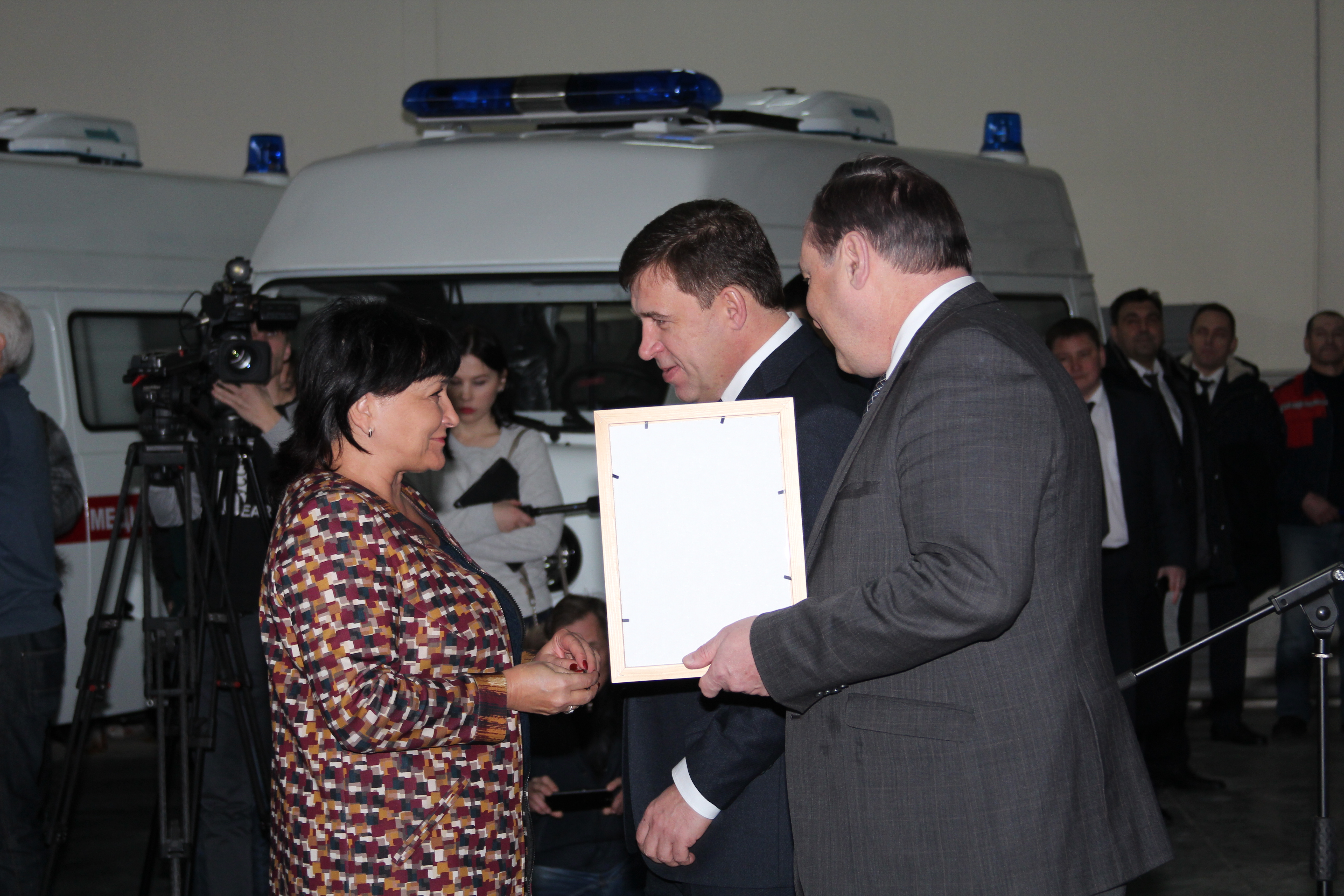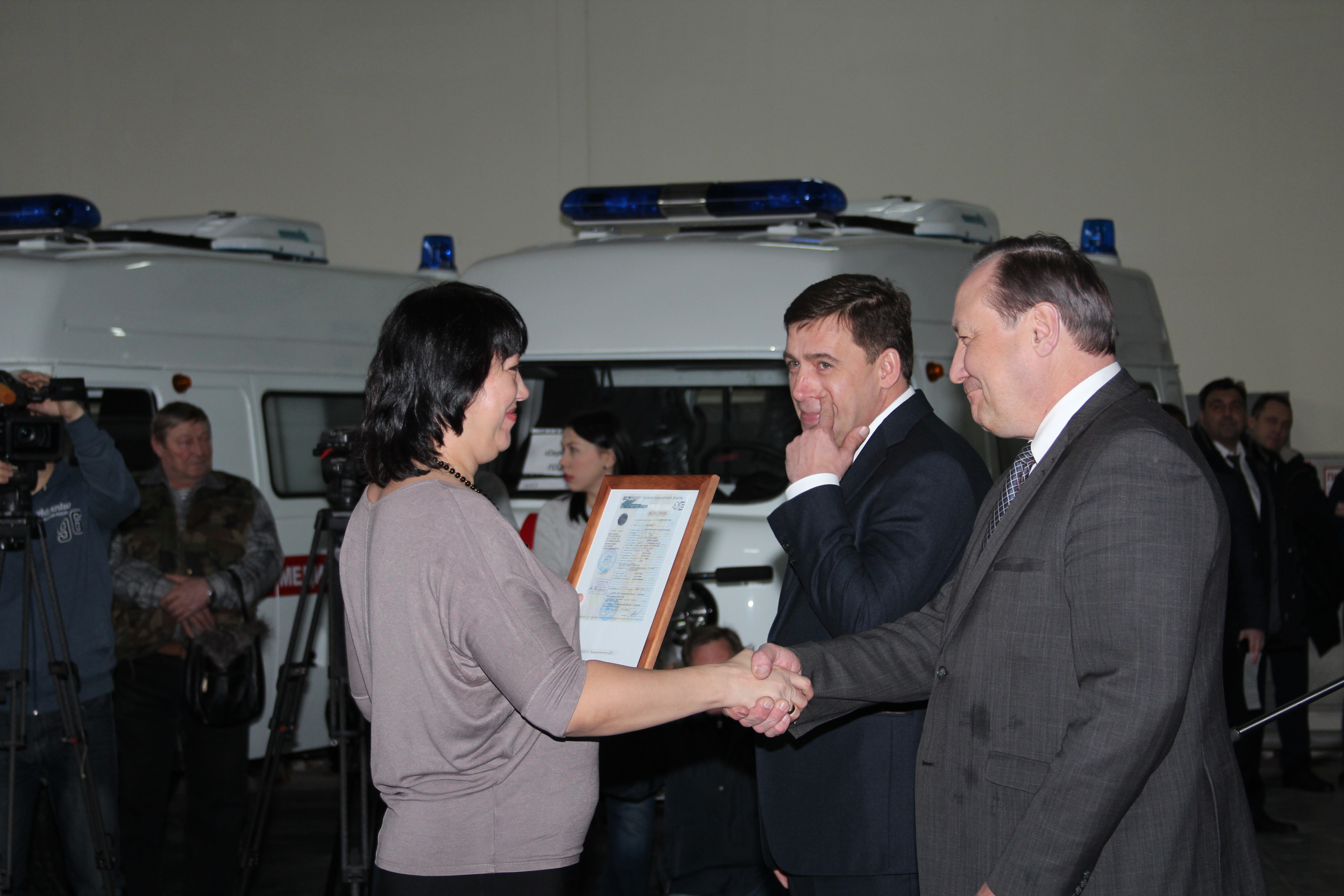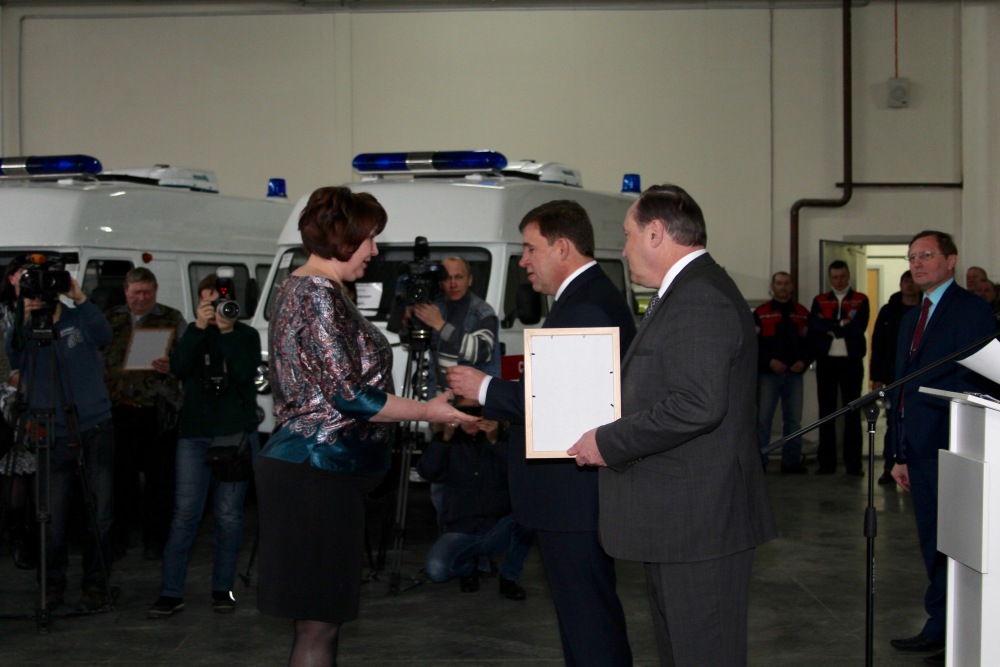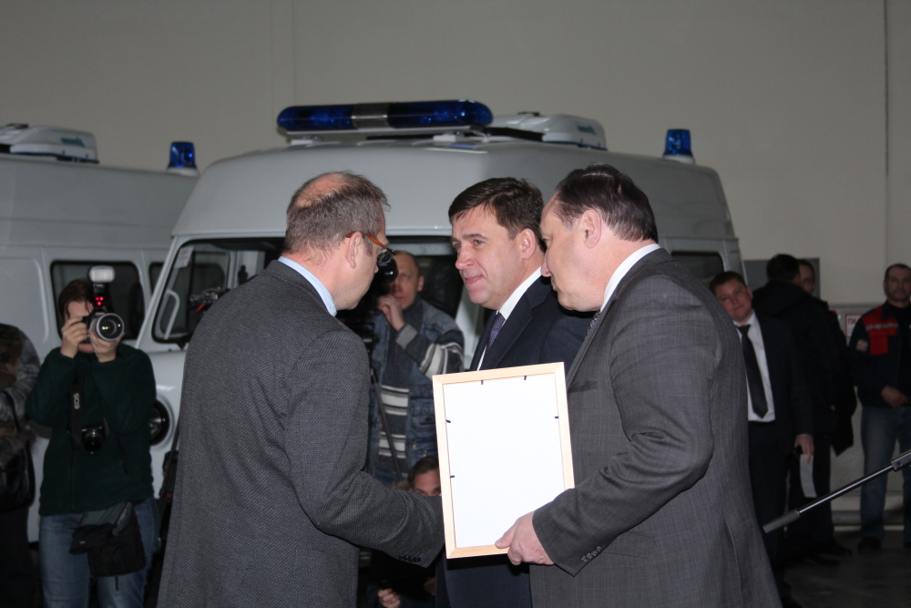 Во исполнения приказа Министерства здравоохранения Свердловской области №74-п от 18 января 2017 года состоялась торжественная церемония передачи новых автомобилей для службы скорой медицинской помощи области и выездной реанимационной бригады неонатальной службы ОДКБ№1, которая прошла 20 января 2017 года в 11-00 по адресу: г. Екатеринбург, ул. Малопрудная, 6, ГБУЗ СО "ТЦМК". Передачу ключей и документов на полностью укомплектованные автомобили класса "В" и "С" представителям муниципальных образований и ОДКБ№1 проводили губернатор Свердловской области Е.В. Куйвашев и министр здравоохранения Свердловской области И.М. Трофимов.