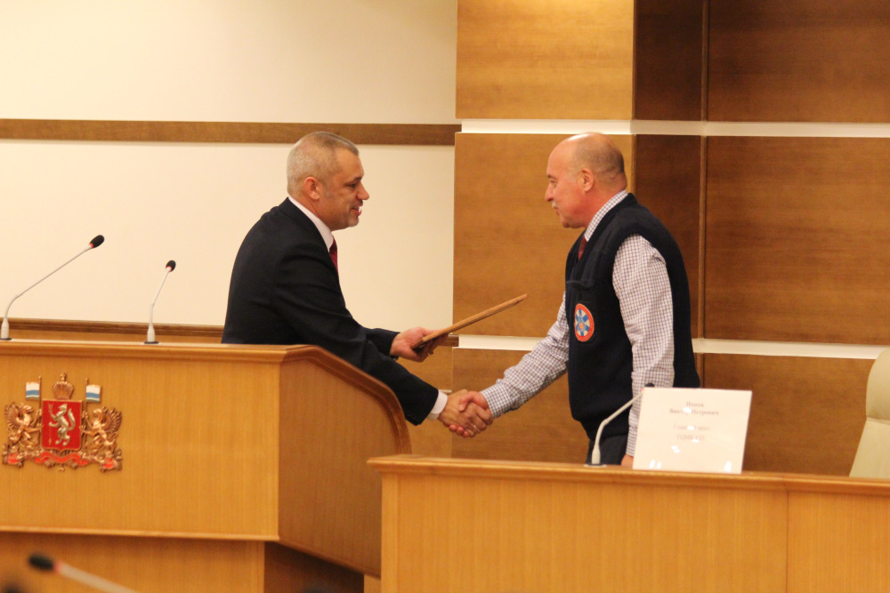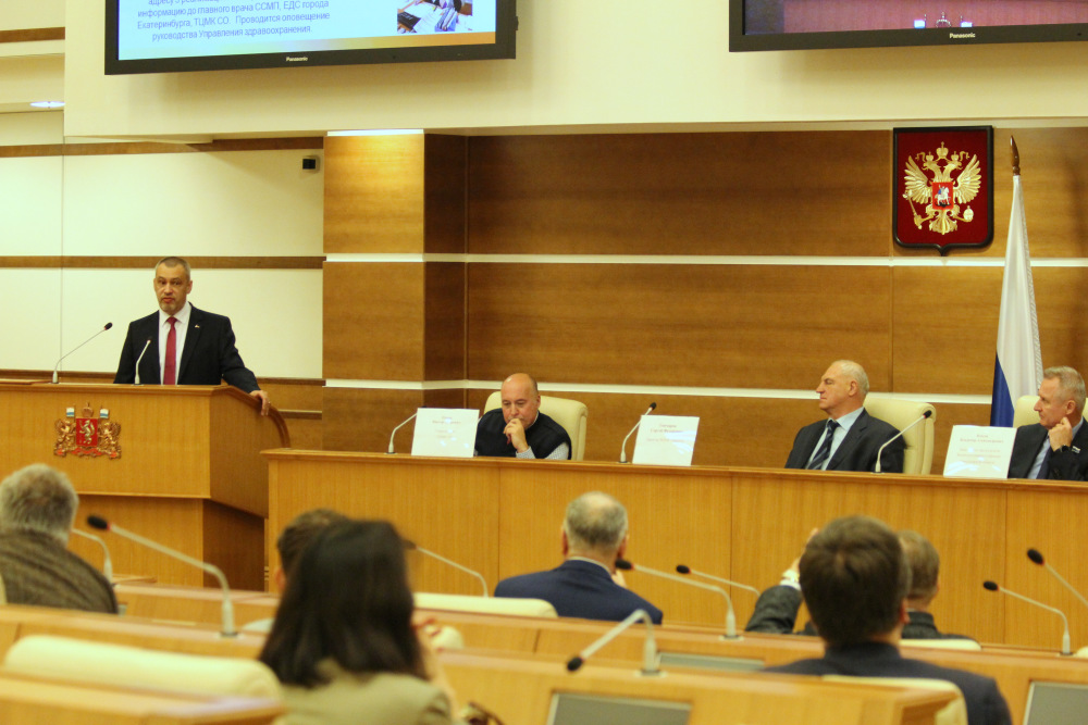 Научно-практическая конференция проходила в здании Законодательного собрания. С приветственным словом и поздравлением выступил министр здравоохранения Свердловской области Цветков Андрей Игоревич, который тепло поздравил коллектив ТЦМК с Юбилеем и вручил специалистам и ветеранам Почетные грамоты от Губернатора Свердловской области Куйвашева Евгения Владимировича и благодарственные письма от Минздрава Свердловской области. Заместитель председателя Законодательного Собрания Свердловской области Власов Владимир Александрович отметил большую роль ТЦМК СО в развитии здравоохранения области и вручил грамоты сотрудникам Центра. Директор ФГБУ «ВЦМК «Защита» Минздрава России Гончаров Сергей Федорович передал поздравления с Юбилеем главному врачу ТЦМК СО Попову Виктору Петровичу от Министра здравоохранения РФ Скворцовой Вероники Игоревны и директора Департамента организации экстренной медицинской помощи и экспертной деятельности Минздрава РФ Гусевой Оксаны Игорьевны. Гончаров С.Ф. в своем выступлении отметил главенствующую роль ТЦМК в регионах при ликвидации медико-санитарных последствий в ЧС и вручил грамоты от ВЦМК «Защита» сотрудникам ТЦМК и станций СМП г.Екатеринбурга, Ревды и Первоуральска за слаженную работу при медицинском обеспечении футбольных матчей- ФИФА 2018г.