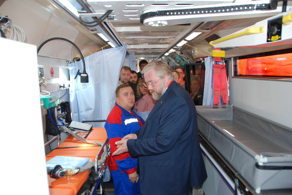 30 – 31 мая 2019 состоялась конференция «Скорая медицинская помощь – 2019» в г. Санкт – Петербурге. ГБУЗ СО «ТЦМК» при поддержке Некоммерческого партнерства «Ассоциация работников службы скорой медицинской помощи и медицины катастроф Свердловской области» и ООО «НиАЗ» представила на выставке Современный мобильный медицинский комплекс нового поколения на базе автобуса ЛИАЗ. Доставка комплекса на выставку осуществлялась своих ходом, расстояние, пройденное автобусом до Санкт – Петербурга и обратно, составило 5000 км. За время дороги продолжалось тестирование возможностей для комфортной и безопасной межбольничной эвакуации пациентов, продолжалось изучение технической составляющей комплекса. На конференции приняли участие представители практически всех субъектов РФ и следующих стран: Германия, Чехия, Польша, Казахстан, Белоруссия, Украина и др. ММК посетил Главный внештатный специалист по скорой медицинской помощи Минздрава РФ Багненко С.Ф. Сергей Федорович высоко оценил возможность применения комплекса как в повседневной деятельности, так и в режиме угрозы ЧС и ЧС.