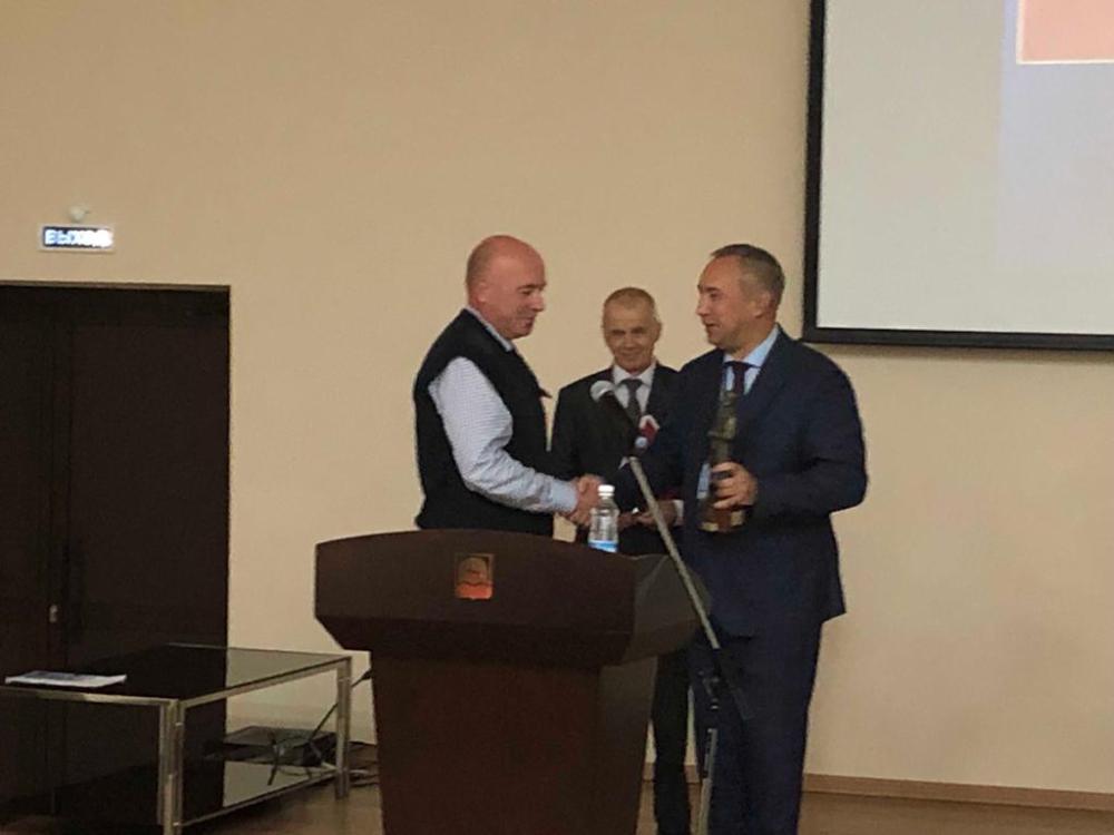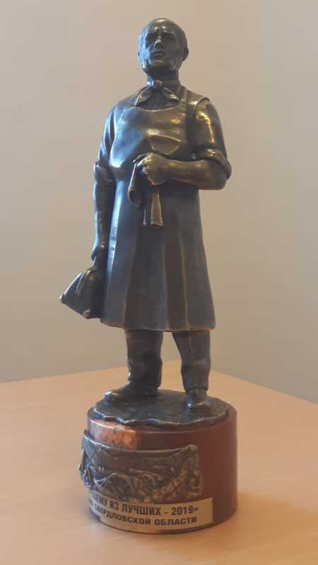 Главному врачу ТЦМК Свердловской области Попову В.П. был вручен Кубок «Пирогов Н.И», на котором табличка с гравировкой «Лучшему из лучших ТЦМК - 2019 г».
