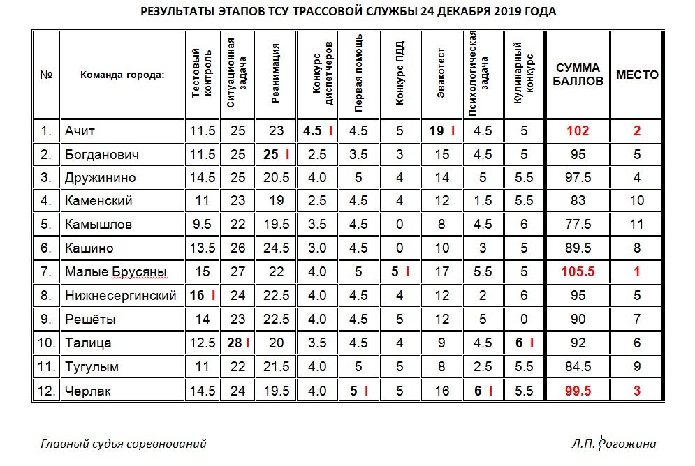 2 место (102 балла) – бригада ТП «Ачит», (старший фельдшер Ватолин А.С.). Помимо этого команда заняла первое место в двух конкурсах: «Конкурс диспетчеров» и «Эвакотест».