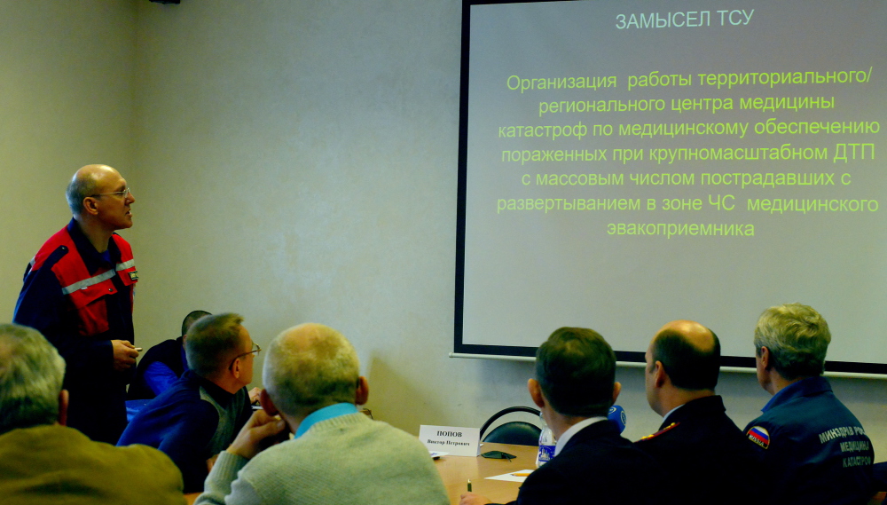 В ходе ТСУ ставились конкретные задачи последовательно прибывающим в зону ДТП медицинским силам и средствам по проведению медицинской разведки зоны ЧС, проведению медицинской сортировки пораженных и оказанию им неотложной помощи, а также по развертыванию эвакоприемника непосредственно в зоне ЧС. В качестве эвакоприемника было предложено использовать Мобильный медицинский комплекс ( ММК) ТЦМК как наиболее приемлемый ( и по срокам развертывания, и по объемам оказываемой помощи) в сложившихся условиях вариант этапа медицинской эвакуации.