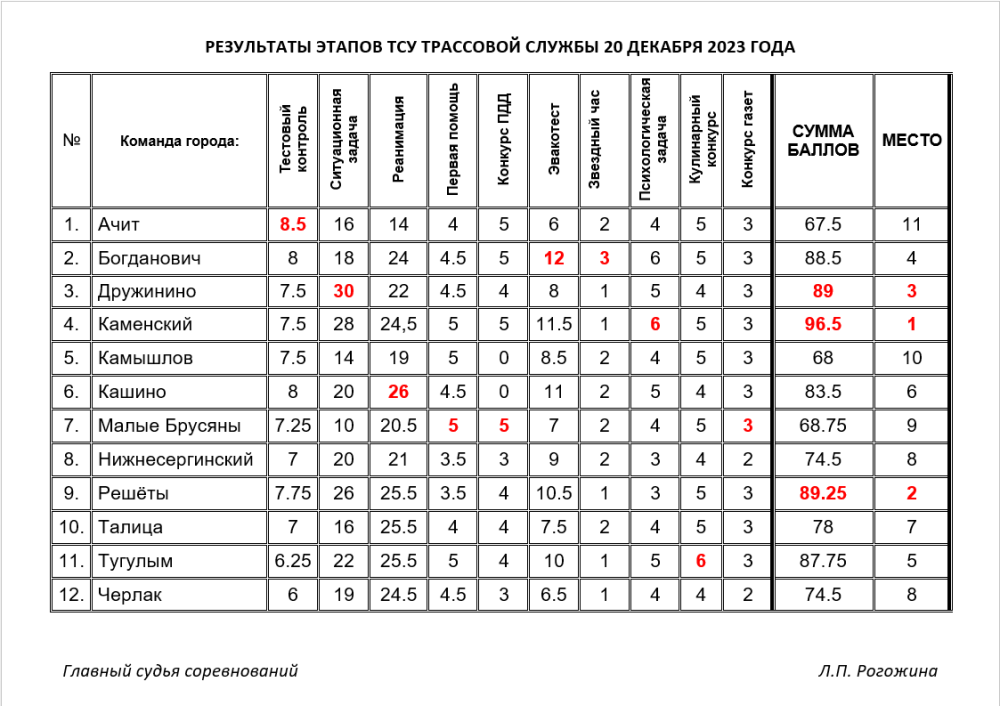 РЕЗУЛЬТАТЫ ЭТАПОВ ТСУ ТРАССОВОЙ СЛУЖБЫ 20 ДЕКАБРЯ 2023 ГОДА